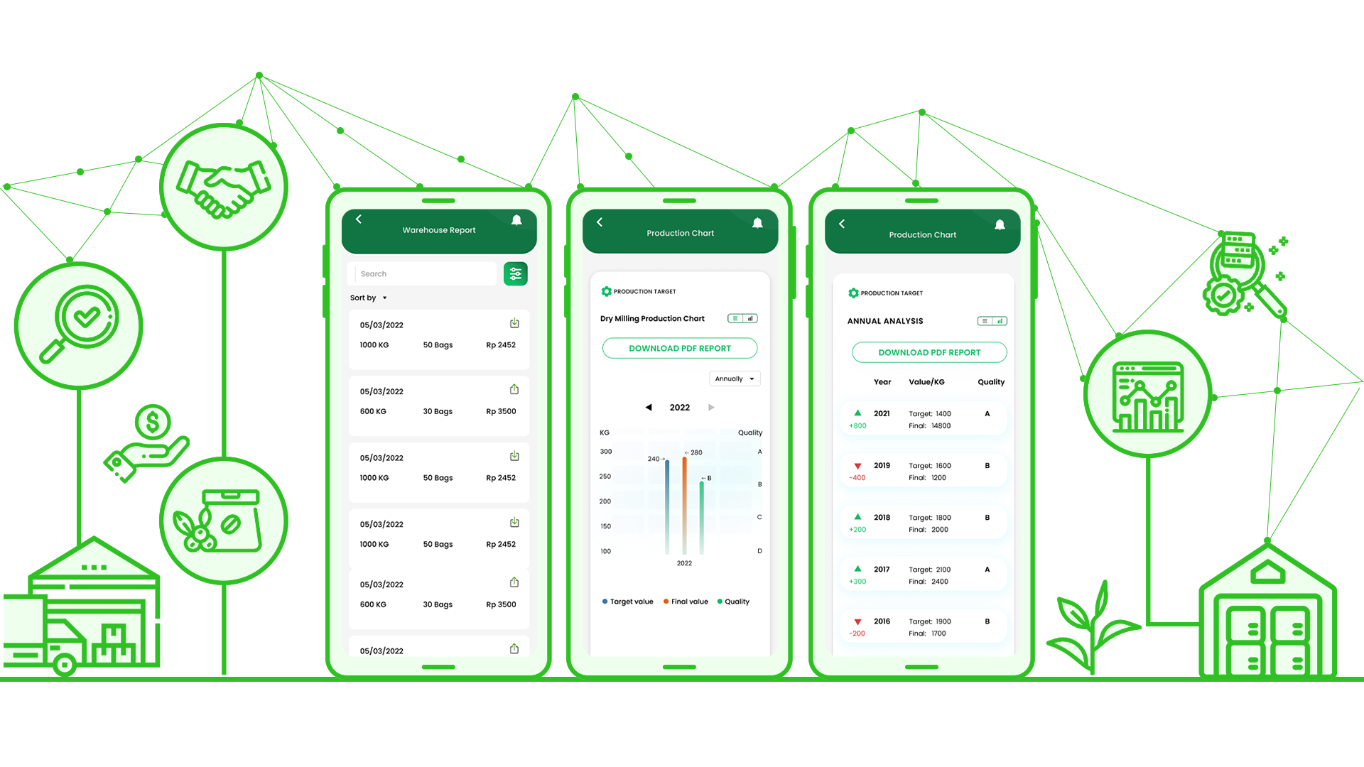 Farmers and cooperatives are now able to digitally track every step of the production process, and instantly connect customers with detailed coffee batch information.